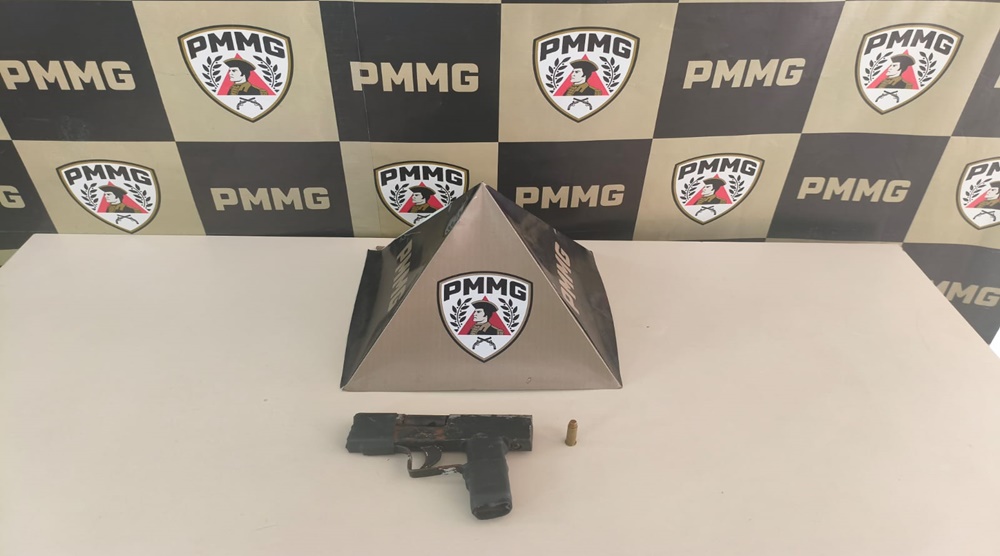 No endereço informado, a equipe constatou que a arma, de fabricação artesanal, estava posicionada entre o muro do estabelecimento e uma pilastra, encontrando-se municiada com um cartucho calibre .38 intacto.