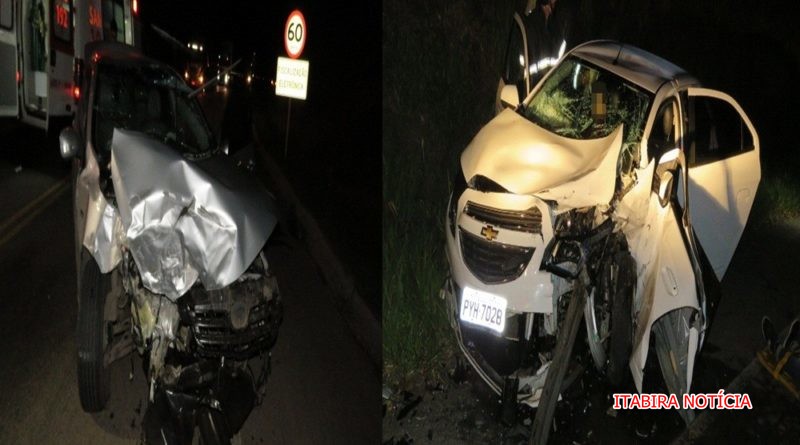 Por volta de 02:30 deste domingo, 2 carros bateram de frente na MG 129, próximo ao presídio, em Itabira MG.