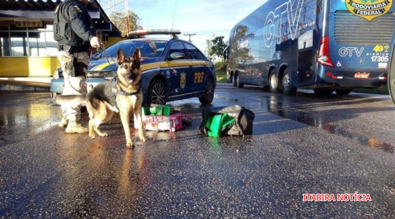 Cães da PRF localizam maconha em mala dentro de ônibus Passageira foi detida transportando 27 kg de maconha