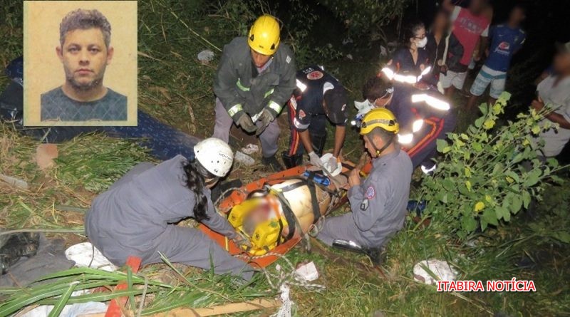 Caminhão carregado de mamão cai em ribanceira na estrada que liga Itabira à Nova Era, motorista fica em estado grave