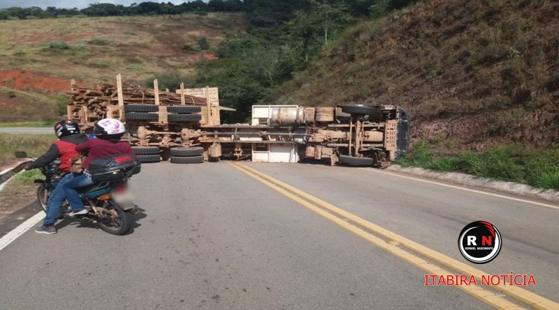 “Bitrem” carregado de eucaliptos tomba na estra que liga Itabira à João Monlevade