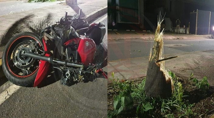 Motoqueiro perde controle e arranca palmeira na avenida João Pinheiro