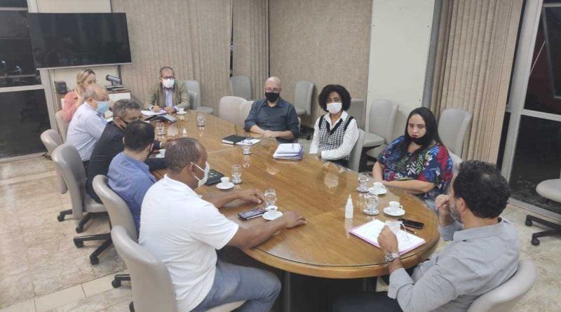 O prefeito Marco Antônio Lage e uma comissão de secretários estiveram em reunião com representantes do Sindicato dos Trabalhadores e