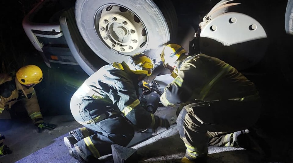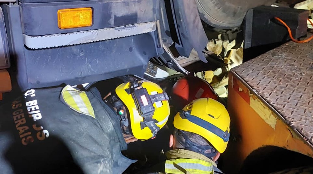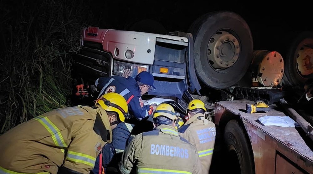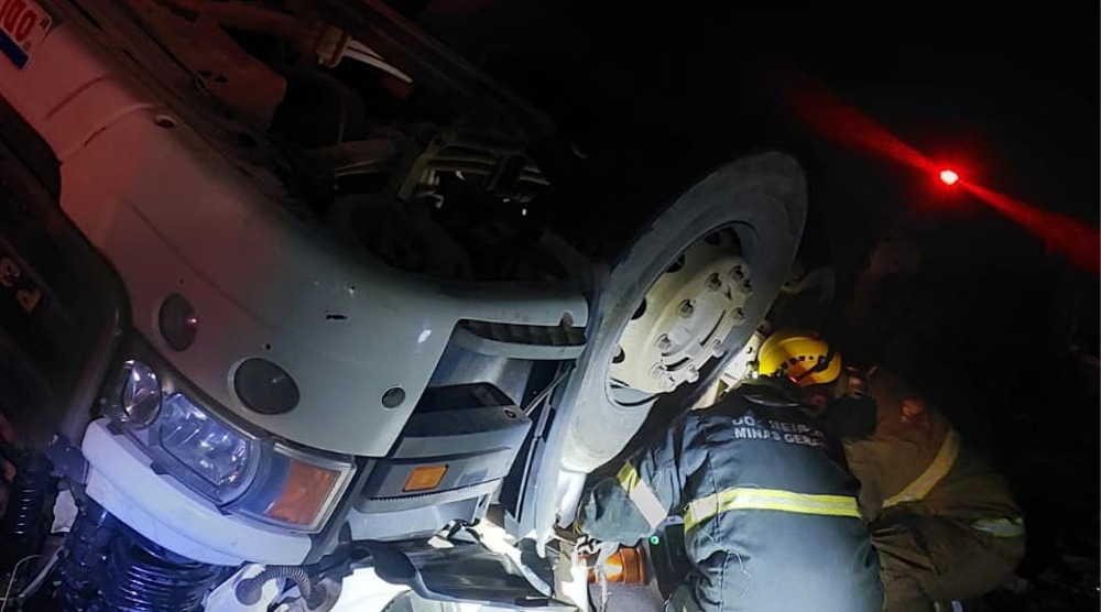 No local, as equipes constataram que o condutor encontrava-se totalmente encarcerado no interior da cabine do veículo. Diante da situação, foi realizado a estabilização do caminhão e emprego de técnicas de salvamento veicular para acesso à vítima.