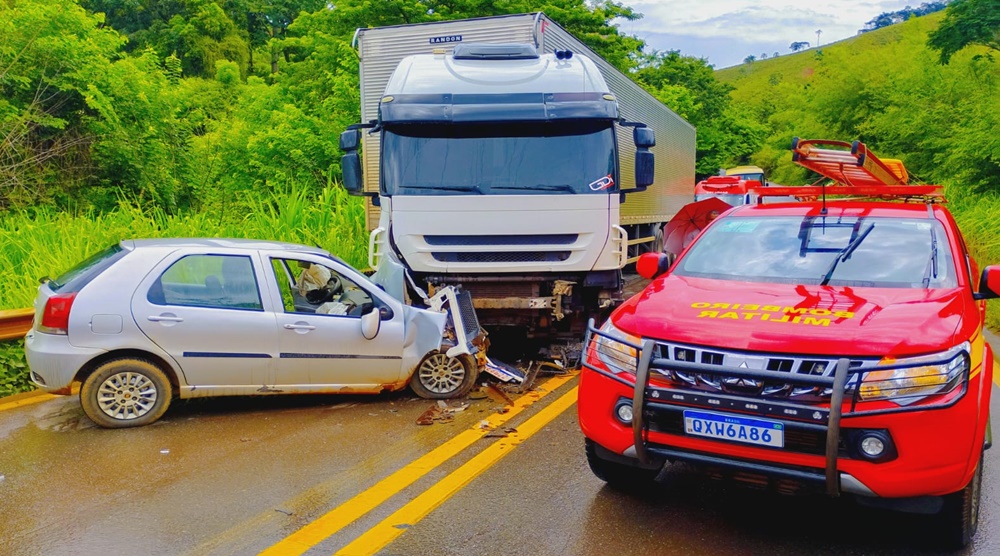 Na segunda-feira, dia 09 de fevereiro de 2026, às 11h42, o Corpo de Bombeiros Militar de Minas Gerais atendeu uma ocorrência de colisão frontal envolvendo uma carreta e um automóvel em rodovia da região de Itabira.