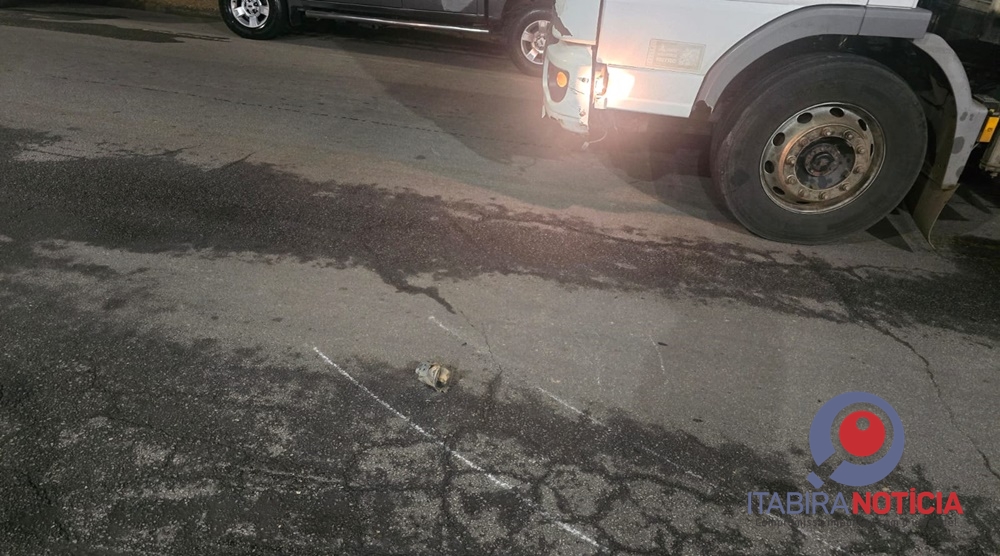 A moto foi removida em cima da carroceria do caminhão. A PM fez a ocorrência.